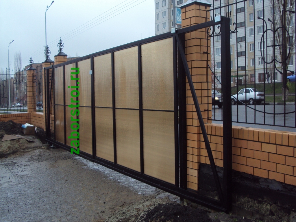 Откатные ворота из поликарбоната пример 9